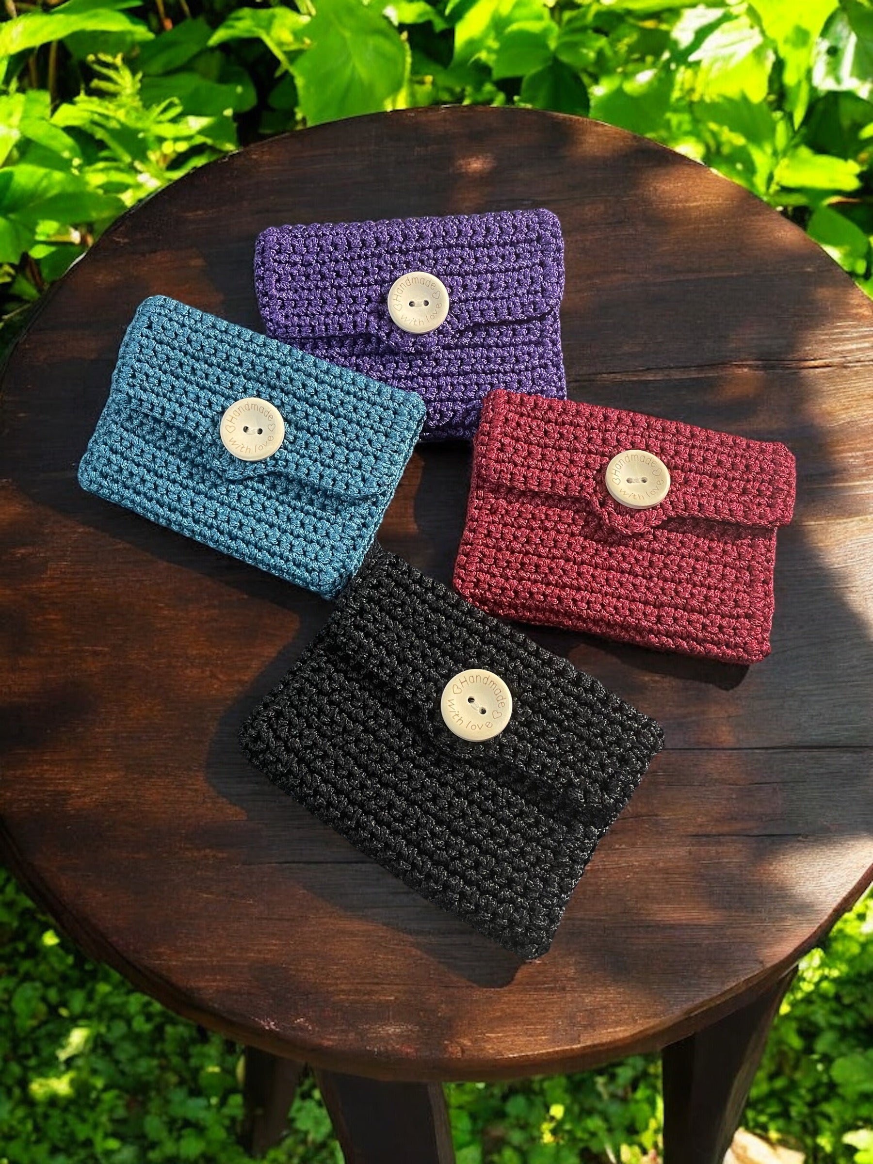 Esplora la praticità e l’eleganza di questi borsellini e portacarte fatti a mano all’uncinetto, accessori artigianali perfetti per organizzare le tue carte, monete o piccoli oggetti essenziali. Realizzati con amore e attenzione ai dettagli, ogni pezzo è unico e disponibile in vari colori per adattarsi al tuo stile personale.