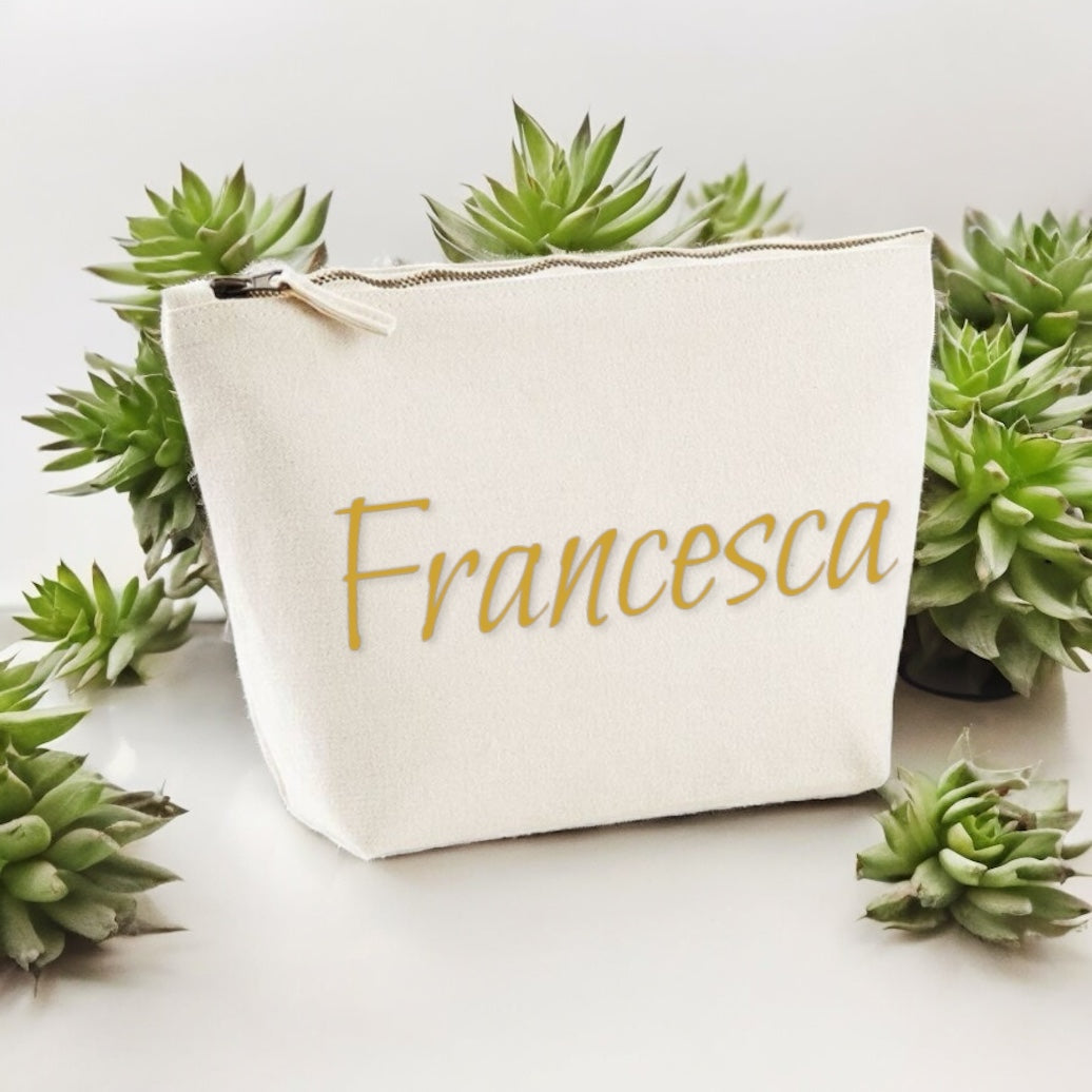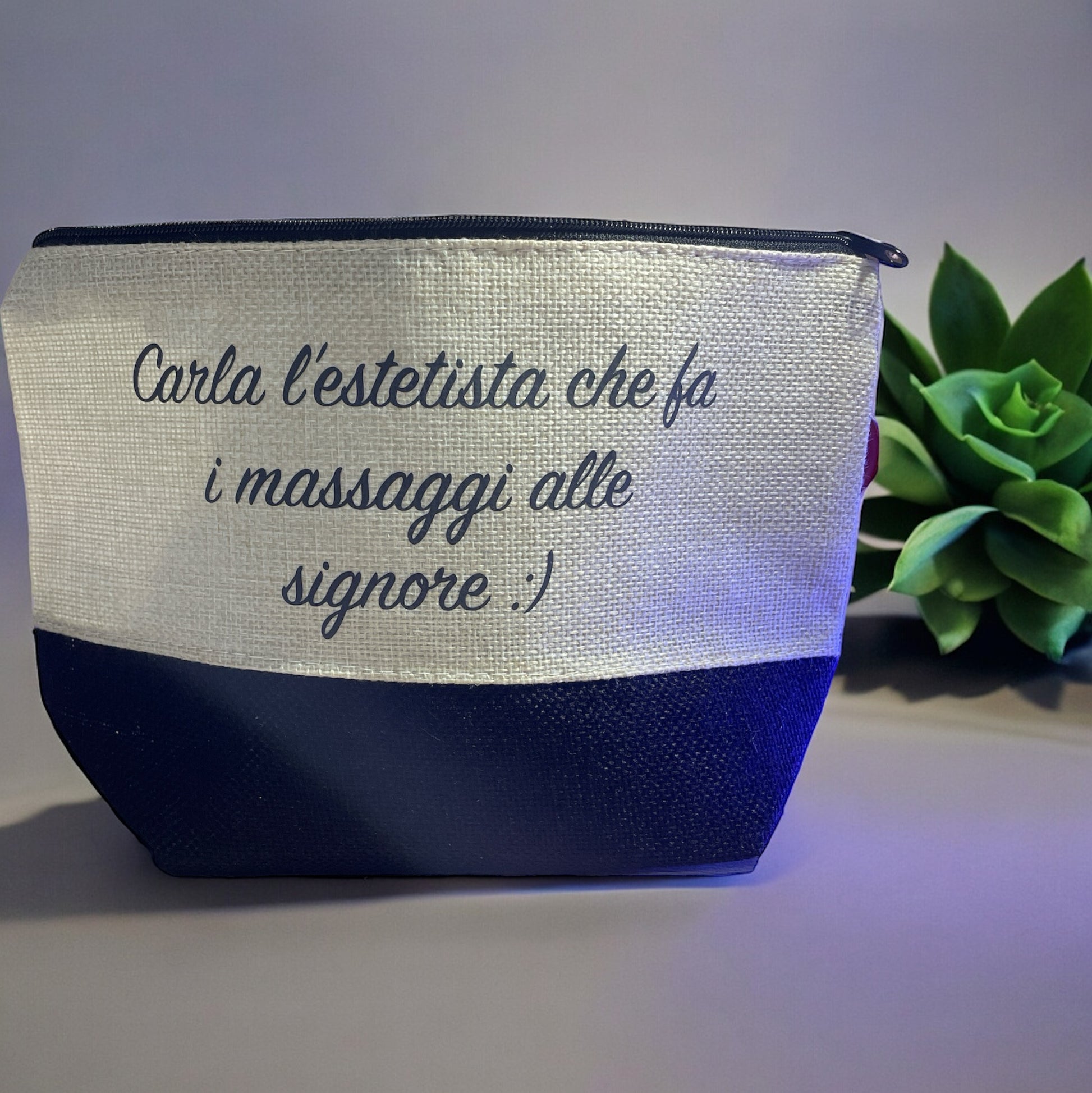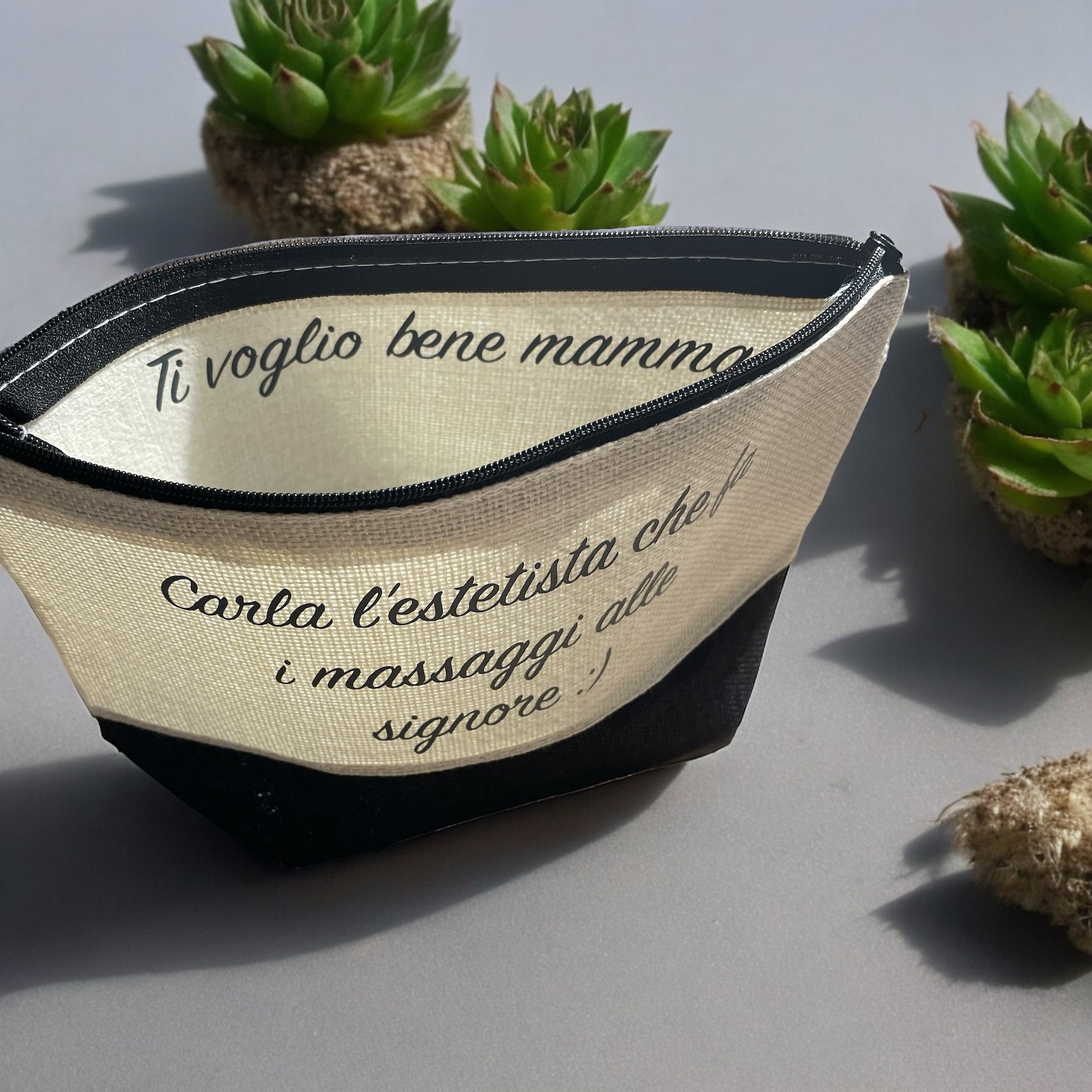 Aggiungi un tocco di stile e funzionalità alla tua routine quotidiana con la nostra versatile pochette in cotone! Disponibile in due eleganti colorazioni, nero e naturale, e in due pratiche misure, questa pochette è l’accessorio perfetto per tenere i tuoi oggetti essenziali sempre a portata di mano. Dotata di una robusta chiusura a zip in metallo, è ideale per proteggere i tuoi oggetti più fragili o per riporre gli accessori del tuo neonato mentre sei in viaggio. La sua facilità di trasporto la rende un must-have per ogni borsa da mamma. E la parte migliore? Puoi personalizzarla sia all’interno che all’esterno con la parola, la frase o il nome che preferisci, aggiungendo un tocco unico e personale. Non lasciarti sfuggire questa occasione per aggiungere un po’ di colore e stile alla tua vita quotidiana!